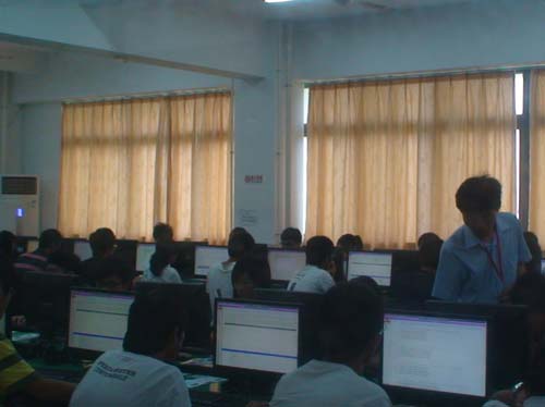 2011年6月19日早上7:10考试工作人员全部到位。7:30,考生陆续进场,监考老师在各试室门口逐一检查学生准考证、学生证和身份证,三证齐备者方准进入考场。开考前,监考老师首先强调考试注意事项,然后播放《考生须知》。临近考试前一分钟,监考老师才从保密员处得到试题库登录密码,同时向考生公布。开考指令响起后,考生登录试题,认真做答。