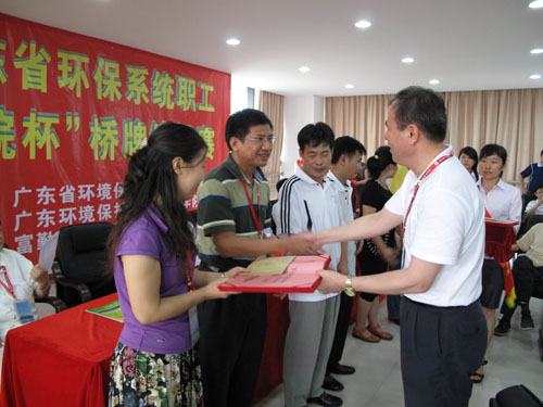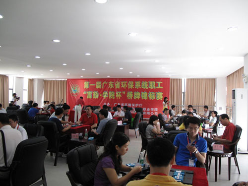 7月17日,艳阳高照,第一届广东省环保系统职工“富勤·学院杯”桥牌锦标赛在我院成功举行。时值亚运会前夕, 本次桥牌锦标赛的举办,将推动桥牌运动在我省环保系统职工中的普及和竞技水平的提高,同时也是我省环保同行们相互交流、增进友谊的良好平台,将有利于推动环保事业的蓬勃发展。一共有12支队伍参加了本次锦标赛。最后来自珠海市环境保护局参赛队的包琳春/付金山组合取得了比赛的第一名。