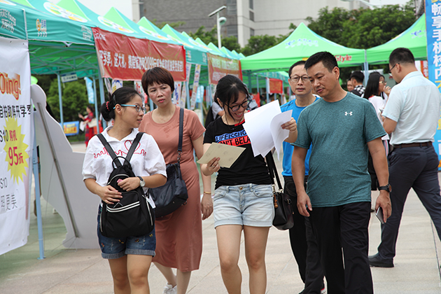 迎新现场,人潮涌动,秩序井然。报到现场,新生入学流程图摆放在显著位置,并设立了新生报到咨询处、家长休息区、行李置存放区,为贫困生开设了绿色通道,解决他们上学的后顾之忧。校园内随处可见维持秩序的工作人员以及为新生和家长热心引路和搬抬行李的志愿者。新生一下车,就有工作人员上前帮忙拿行李,之后带到各系进行注册,办理党团组织关系,领取宿舍卡、军服、饭卡等等,随后带领新生到达宿舍。在各系迎新现场,专业负责人耐心给学生家长介绍各个专业。工作人员耐心、热情、细心的服务,令家长、新生都赞叹不已。