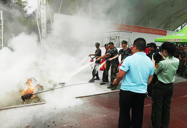 同学们亲自体验灭火