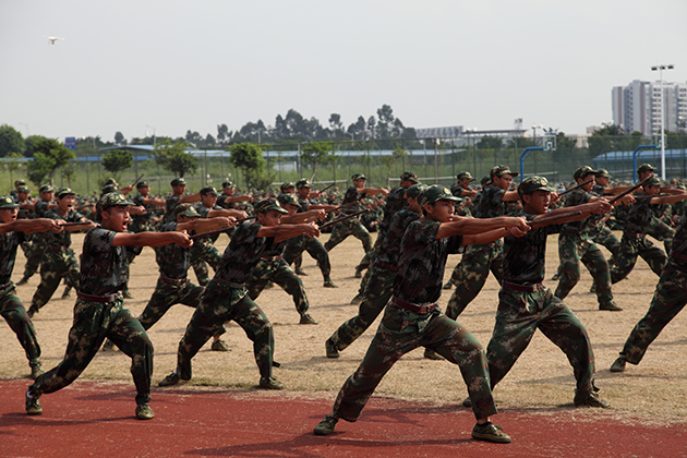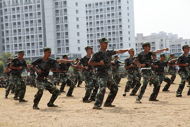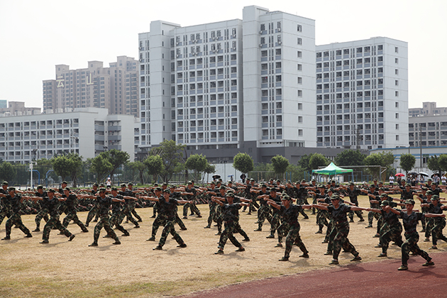 随后,由500名参训学生组成的技能汇演方队,分别表演了军体拳、女子匕首操、擒敌拳、短棍术、双截棍、感恩手语,他们以良好的精神面貌、高昂的气势、整齐的动作,传递出了环院蒸蒸日上的蓬勃发展气息。