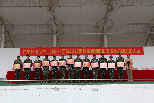 汇报表演结束后,学生工作部邹浩部长宣读了《表彰2017年新生军训先进集体和先进个人的决定》,并为军训中涌现的1个先进教官集体、13个先进班集体、183名先进个人进行了表彰和颁发荣誉证书。参训学生代表也在大会上做了激情洋溢的交流发言,分享了军训苦辣甘甜和体验收获,并表示在今后的学习生活中,继续发扬军训中吃苦耐劳、顽强拼搏的精神,立志成为一名“厚德、精业、创新、有为”的环院大学生。