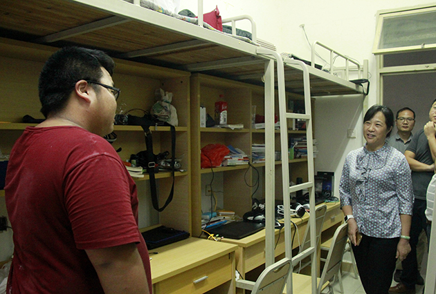 10月26日下午,党委副书记李杨红带领学工部和各系负责人深入学生寝室,传播宣传十九大精神,零距离走访慰问学生,并察看辅导员进驻情况。