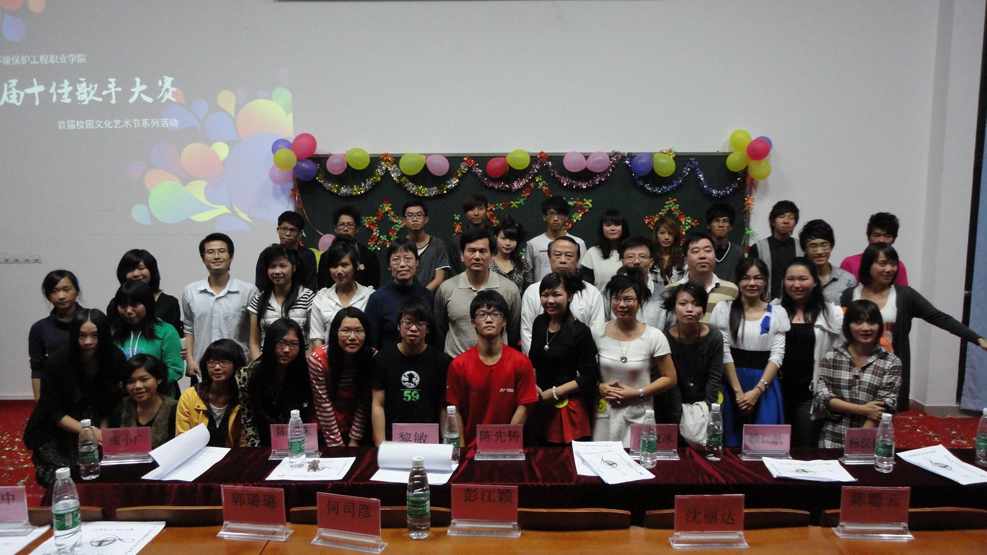 大赛在两响礼炮声中开始,经过一番激烈的角逐,评选出“优秀歌手”五名,“十佳歌手”三等奖七名,黄浩然和梁家豪获得二等奖,10级环评(2)班李芩芩同学获得一等奖。