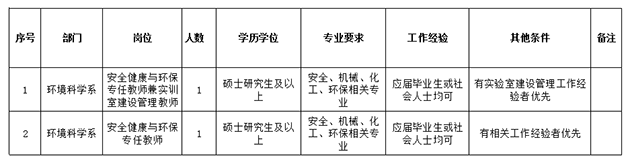 因工作需要,学院环境科学系所现面向社会招聘以下人才: