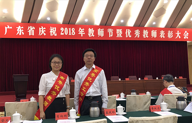 9月3日上午,省委、省政府在广州召开广东省庆祝2018年教师节暨优秀教师表彰大会。省委书记李希、省长马兴瑞、省政协主席王荣出席会议并为受表彰的南粤优秀教师、南粤优秀教育工作者代表颁奖。我院刘晓冰副院长、环境科学系郭璐璐主任分别荣获 “南粤优秀教育工作者”“南粤优秀教师”称号并参加了表彰大会。