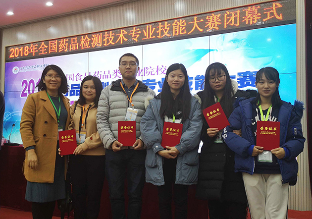 11月16—18日,2018年全国食品药品类职业院校“药品检测技术”专业技能大赛举行,我院参赛学生梁苑慧、黄俊珊、魏蝶虹荣获团体二等奖,指导教师有谢月莹、张悦君、曹龙辉、黎喜云、何旭伦、严迎燕。