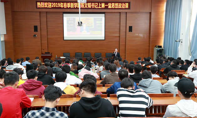 3月4日上午,党委书记陈文韬开讲主题为“追逐环保梦 做有为青年”的第一堂思政课,院办、教务部、思政部负责人,以及部分思政课教师与160名学生聆听了本次课。