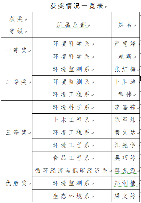 经过激烈角逐,来自环境科学系系的严慧婷同学和赖斯同学获得一等奖,同时严慧婷同学也获得最佳人气奖。
