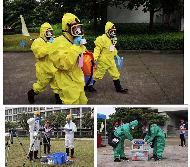随后,各参赛队进入了紧张有序的比赛中,演练比武场景是模拟某地级市一化工厂发生爆炸,市生态环境局接报后,根据突发环境事件现场情况启动应急响应,相关环境应急人员携带采气袋(罐)等仪器设备快速奔赴事故现场,并依据现场情形,快速而科学地制定应急监测方案,开展紧张而有序的采样分析过程,并根据监测结果作出信息报送、信息公开、舆情应对、应急处置;126名参赛选手工作流利,团结协作,一气呵成,表现出了“严、真、细、实、快”的工作作风和良好的精神风貌,展现了我省生态环保铁军的风采。