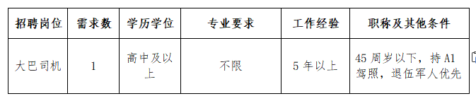 因工作需要,学院现面向社会招聘大巴司机1名。