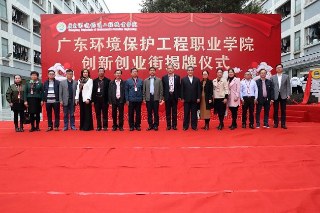 12月23日下午,学院创新创业街举行揭牌仪式。广东省教育厅副巡视员邱克楠、广东省教育厅就业指导中心副主任冯伟雄、广东省环保产业协会秘书长易颂辉、佛山市人力资源和社会保障局副调研员孙振腾等十余位嘉宾,出席揭牌仪式。