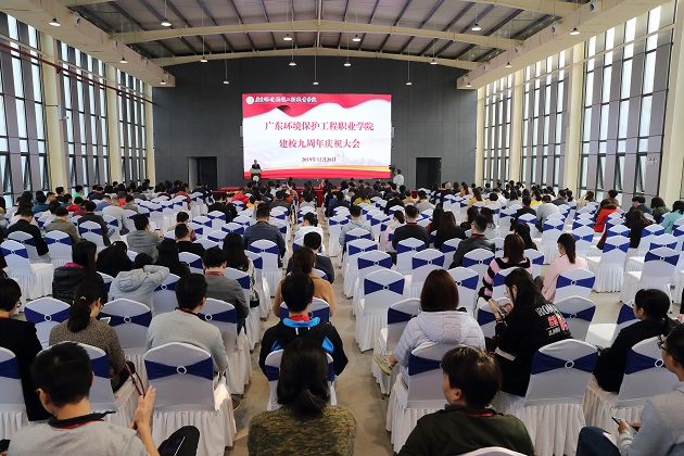 孙水裕院长作了题为“不忘初心 牢记使命 创新发展 再谋新篇”的报告。他饱含深情地回顾了学院办学9年的发展历程,对办学以来学院取得的成就进行了总结。他指出,经过艰苦创业建学院,规模发展壮学院,内涵发展强学院的阶段,学院在党的建设、办学规模、师资结构、专业建设、人才培养质量、科研和社会服务等方面都取得了显著成绩。他表示,这些成绩的取得,是省委省政府、省教育厅、省生态环境厅等各级领导亲切关怀的结果,是全体师生艰苦奋斗、共同努力的结果。站在新的起点上,学院将继续坚持以习近平新时代中国特色社会主义思想为指导,贯彻落实全国教育大会和环保大会精神,聚焦建设特色鲜明高水平职业学院和建成职业大学总目标,落实立德树人根本任务,提升服务区域发展能力,为我省职业教育事业和粵港澳大湾区生态文明建设做出更大贡献。