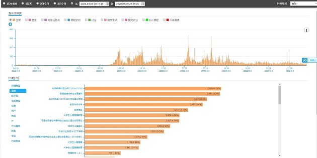 全院当天共开设317门次线上课程,师生登录平台教学和学习99000人次。疫情面前,每个人都是战士,为践行教学进度不掉队,教学质量有保障的承诺,师生们提前10分钟进入网上课堂,开始网上课堂教学工作。签到、直播、互动、答疑,地点形式在变,师生们课堂教学热情不变。