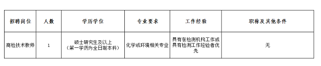 因工作需要,学院现面向社会招聘商检技术专业教师1名。