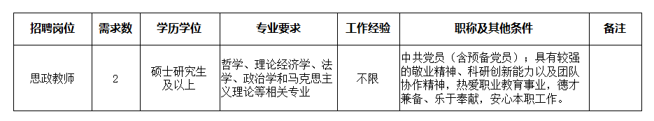 因工作需要,学院现面向社会招聘思政教师2名。