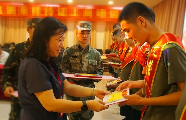 学校党委副书记、校征兵领导小组副组长李杨红副书记分别为2020年度校园应征入伍学生佩戴光荣花并颁发入伍通知书、纪念品。同时,她寄望即将奔赴军营的12名新入伍学生,希望他们时刻牢记习近平总书记2017年对南开大学新入伍大学生寄语,坚守初心使命,牢记学校校训,带着环院人特有的情怀,在军营这个大熔炉里淬火成钢,努力争做“爱国兵”、“奋斗兵”、“智慧兵”。(文图/学生工作部 陈英伍)