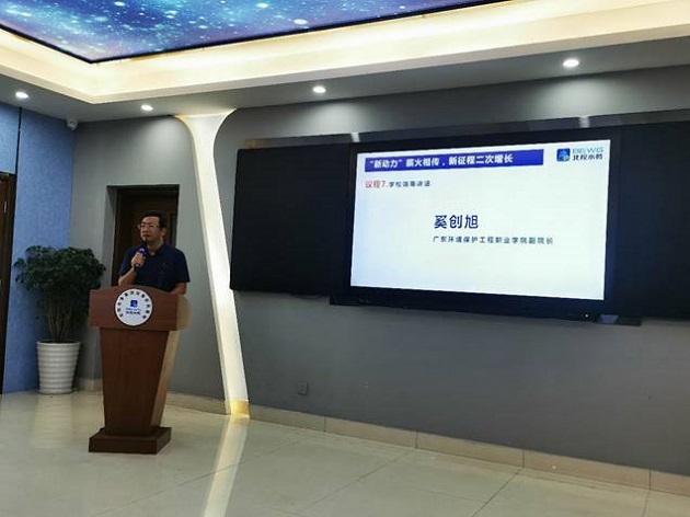 9月17日上午,奚创旭副院长率领教务部副部长胡振华、环境工程系主任齐水冰、副主任叶平一行前往广东溢丰环保科技有限公司参加2019级环境工程技术专业现代学徒制班的拜师仪式,一场温馨的现代学徒制班拜师仪式在北控水务集团东莞市大岭山永溢水务有限公司的会议室举行。