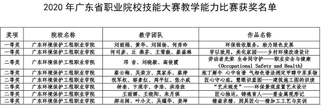 在2020年度广东省教育厅主办的全省职业院校技能大赛教学能力比赛中,我院教师喜获一等奖2项,二等奖6项,获奖率达88.9%,并且有5个作品参加国赛遴选,1个作品通过遴选进入国赛,创造了历史最好成绩,除了体现在整体获奖数量最多、一等奖数量和二等奖数量均最多以外,还实现了有作品冲入国赛的重大突破。