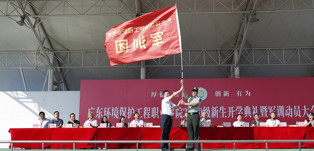 最后,孙水裕院长向军训团授旗,吴伟宁校长宣布开训令。(文/院办 李芩芩 图/信息中心 钟岸青)
