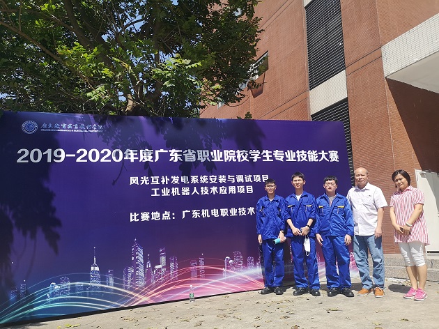 近日,在2019-2020年度广东省职业院校技能大赛学生专业技能竞赛工业机器人技术应用赛项中,我院机电工程系学生郭家健、蔡林源、杜浩天三人组成的团队喜获一等奖,简志雄、许东霞两位老师为团队指导。