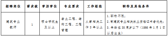因工作需要,学院现面向社会招聘建筑群专业教师1名。