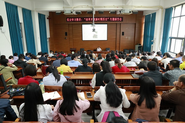 按照学校党史学习教育总体安排,4月8日下午,党委书记陈铭贵主持召开2021年第三次党委理论学习中心组扩大会议,专题学习“改革开放新时期历史”。本次专题学习特别邀请了省政府原参事、改革研究专家陈池同志作辅导学习报告。在家校领导与全体教职工聆听了报告。