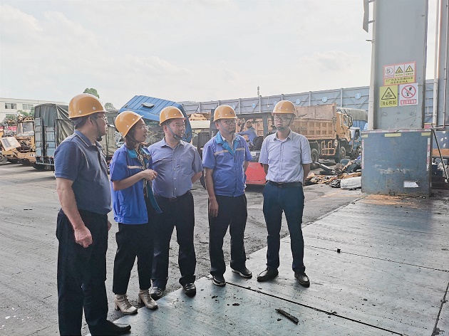 孙水裕一行参观了公司的资源回收基地、报废汽车拆解基地,给大家讲解了资源回收分选打包流程和报废汽车拆解流程等。