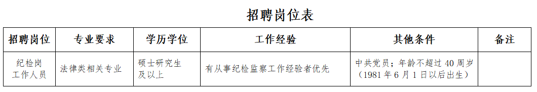 因工作需要,学院现面向社会招聘纪检岗工作人员1名。