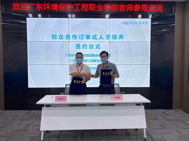 在广东好太太科技集团公司,陈铭贵书记一行在好太太公司人力资源主任尹海平陪同下先到公司展厅及生产车间参观。接着,校企双方就人才需求、人才培养、资源共享等合作事项进行了深入交流,先进制造学院负责人马承荣详细介绍了订单班情况,并对实习生提出了建议和希望。最后,陈铭贵书记与好太太公司人力行政总监陈利敏代表校企双方签署订单班合作协议,并慰问了现场的实习生,了解他们实习工作、生活等情况。