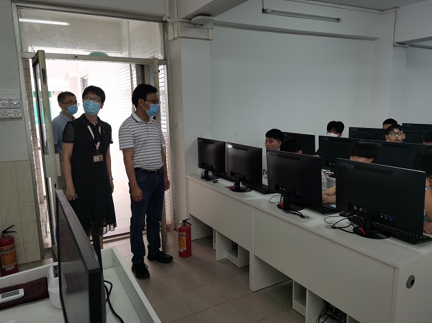 为全面掌握新学期教学工作运行状态,切实保障常态化疫情防控下教学工作平稳有序开展,9月6日上午,陈铭贵书记、孙水裕校长、刘晓冰副校长带领发展规划部、教务部、现代教育技术中心、中职教育部等部门负责人对新学期开课第一天教学情况进行了全面细致的检查与巡视。
