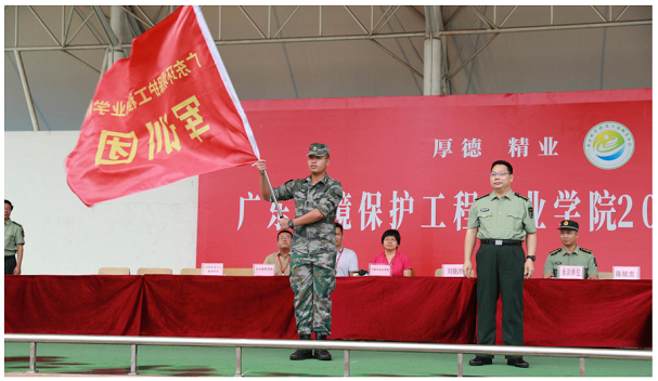 最后,陈铭贵书记向军训团授旗并宣布新生军训正式开训。(文图/陈英伍)