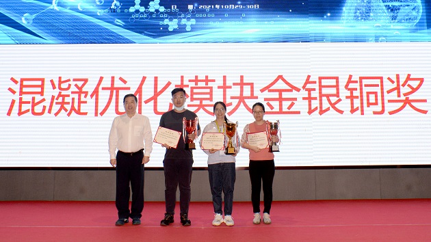 63名参赛选手在两天的时间里完成“理论知识模块”“混凝优化模块”“水样监测模块”三项模块考核。经过紧张激烈地角逐,共决出了各单项模块金银铜奖,以及个人考核总成绩的一、二、三等奖等奖项。为表彰鼓励积极组织参加竞赛的24家单位企业,竞赛组委会还为获奖人数前8名的单位颁发奖杯、证书。