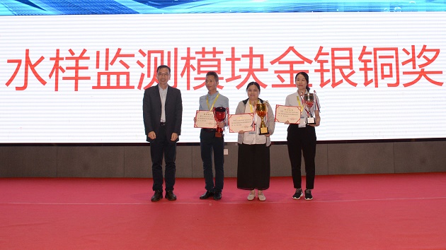 陈振广秘书长为“水样监测模块”考核前三名选手颁奖