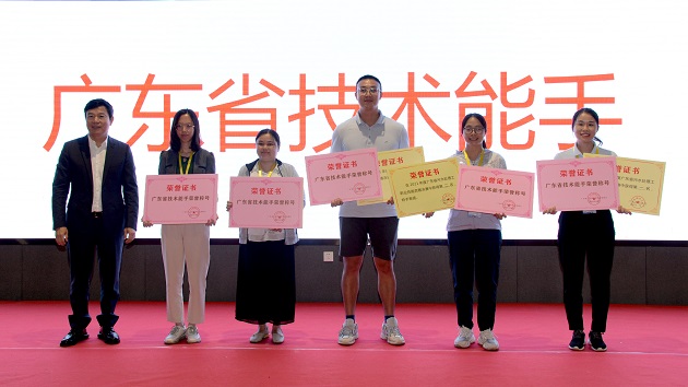 麦建波会长为获得“广东省技术能手”的5名选手颁奖