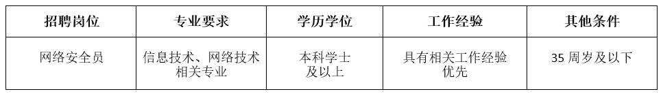 因工作需要,学校现面向社会招聘网络安全员1名。