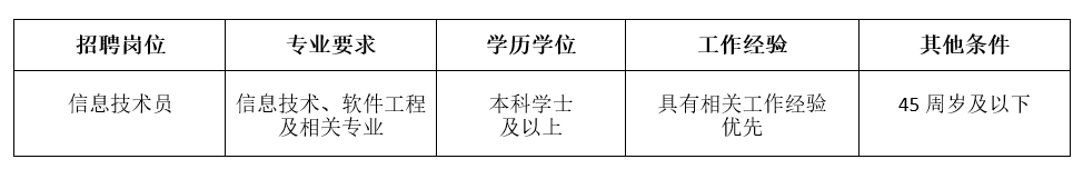 因工作需要,学校现面向社会招聘信息技术员1名。