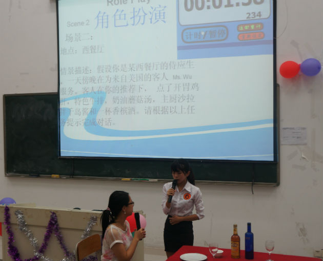 由基础教育部和环境艺术与服务系联合主办的学院首届烹饪职业英语口语大赛于2015年7月2日晚上在教学楼221拉开帷幕,基础教育部谢雯主任、环境艺术与服务系郝志阔副主任以及基础部的英语老师出席了本次大赛。
