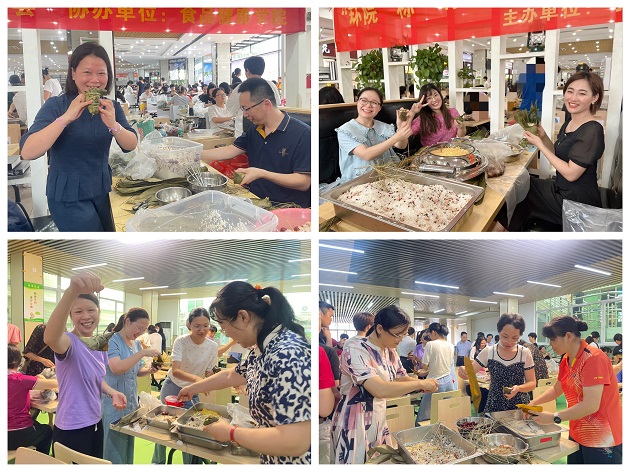 端午将至,艾叶飘香。为弘扬中华民族优秀传统文化,丰富广大教职工的精神文化生活,5月30日至31日下午,学校工会联合食品健康学院分别在南海校区和广州校区举办了“环院‘粽’有情”教职工包粽子活动。学校党委书记陈铭贵,校长孙水裕,副书记、纪委书记李杨红,副校长、工会主席冯定坚以及180多名教职工参加了活动。
