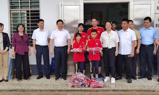 在那射村,还举行了美丽乡村墙绘启动仪式,人居环境学院将于今年暑假组织师生对那射村主干道墙面进行墙绘。此外,环境工程学院参与组织了垃圾分类站启用仪式;向那射小学、骏达小学全体师生捐赠校服仪式;向4户困难群众发放慰问金。
