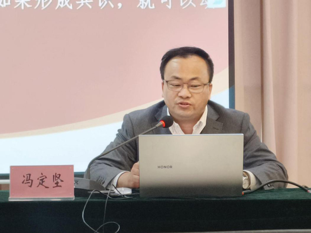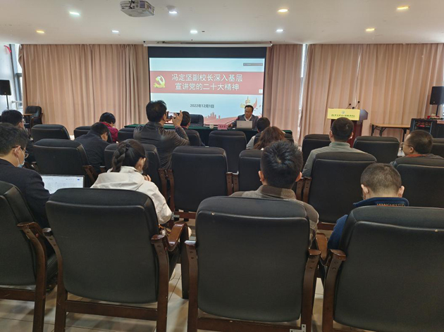 在全校深入学习宣传贯彻党的二十大精神之际,12月1日,学校党委委员、副校长冯定坚在行政楼401会议室宣讲“深入学习贯彻党的二十大精神”,本次宣讲采取“线上+线下”的形式举行。总务后勤部、科学技术部、继续教育学院、环院环境工程公司、节能与安全学院全体党员参加了宣讲活动。