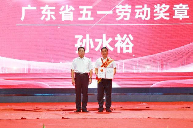 陈铭贵为孙水裕颁发五一劳动奖章