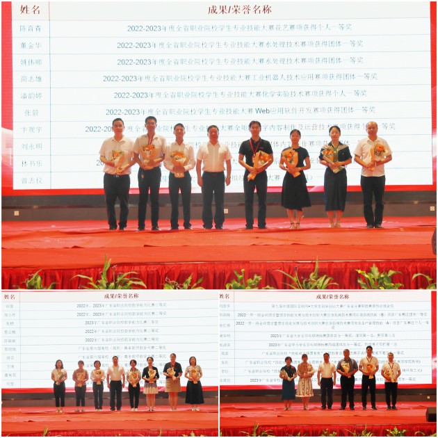 食品健康学院教师钟晓霞作为师德标兵代表发言。钟晓霞指导学生在各类竞赛屡获佳绩,并以不懈的努力和拼搏取得省青年教师教学大赛和省教学能力大赛的优异成绩。环境管理与大数据学院教师王小辉作为优秀教师代表发言。她坚守培养高质量人才的初心,与团队齐心共建品牌专业、高水平专业群和省优秀教师团队,参加教学竞赛和指导学生均取得了优越的成绩。创新创业学院教师刘浩宇作为省部级以上获奖教师代表发言。他表示获奖的背后离不开学校领导和各部门的大力支持,竞赛团队以自身的努力奋发、拼尽全力,最终实现中国国际“互联网+”大学生创新创业大赛首获省金,并入围国赛,实现新突破。人居环境学院学生代表杨先婷发言,她表达了对老师们的感谢和节日的深切祝福,以及努力成为新时代好青年的决心。