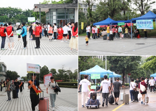 迎新志愿者们早上5点半就已上岗,他们有的在佛山西站负责接站、有的举着指示牌引导新生、有的帮助新生搬运行李、有的协助保安维持交通秩序……他们顶着烈日服务新生,虽挥汗如雨,但温暖热情、满脸笑容,给予学生和家长最大的暖心、贴心、安心服务,用他们的实际行动书写着环院担当。