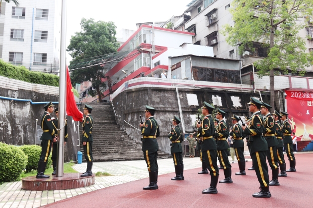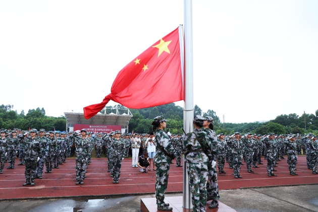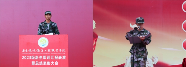 佛山校区人居环境学院23建筑设计1班何力同学和广州校区中职教育部23治理1班叶力晖同学作军训感想发言。