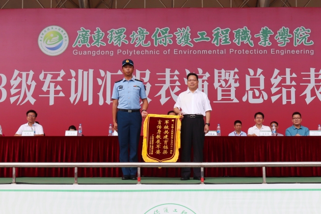 单位党委书记陈铭贵为军训先进班级颁发牌匾(广州校区)