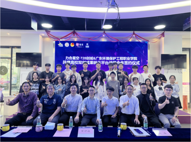 11月23日下午,开云与力合星空·728创域(以下简称为“728创域”)举行共建高校双创成果转化平台战略合作签约仪式,学校党委副书记钟真宜,丹灶镇副镇长黄永聪,丹灶镇总工会主席、妇联主席庞小梨,728创域总经理刘峰以及开云“生态环境创新创业训练营”师生代表共50余人参加了签约仪式。