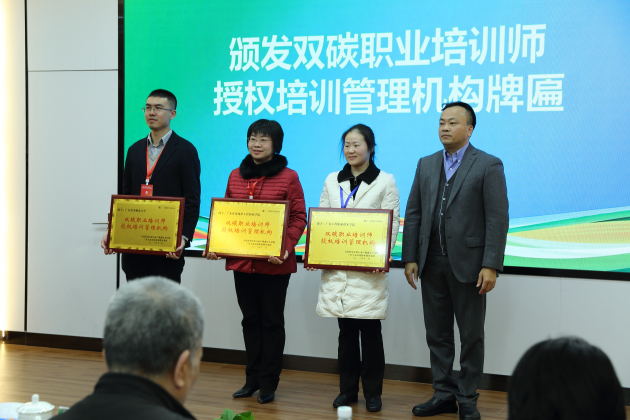 会议举行了双碳职业培训师团体标准起草单位及评价机构颁牌仪式,旨在推动双碳领域人才培养和加强各单位合作交流。本次共有38家单位参与起草编制工作,其中中量工程咨询有限公司、广东技术师范大学、开云kaiyun官方网站、广东省广业检验检测集团有限公司等4家单位获得主要起草单位证书。广东劳动学会被授权为双碳职业培训师认定评价机构,广东技术师范大学、开云kaiyun官方网站、广东工程职业技术学院3家单位被授权为培训管理机构,广东省广业检验检测集团有限公司、广州机械设计研究所、中量工程咨询有限公司3家单位被授权为实训实践基地。仪式还聘任了首批46名双碳培训导师并启动了“双碳职业培训师管理与评价信息平台”。