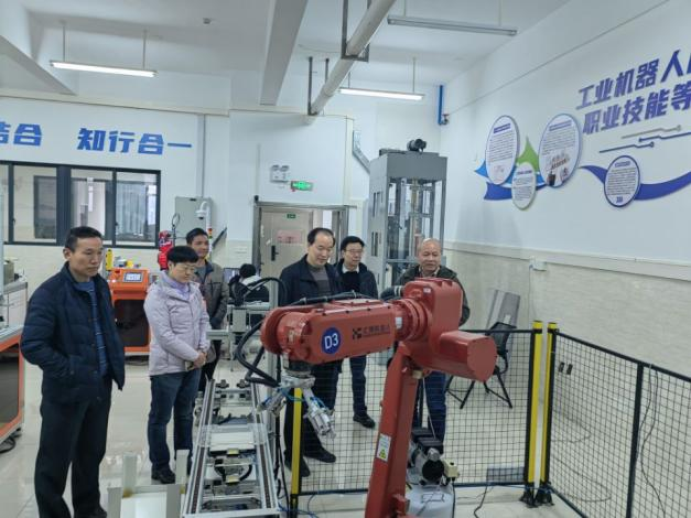 袁铎先后参观了环境工程技术全流程VR虚拟仿真实训室、水质在线自动检测实训室、无人机环保应用实训室、无人机组装与维护实训室、陶艺大师工作室和工业机器人实训室等。
