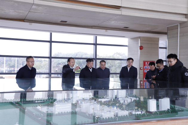在冯定坚的陪同下,郭军一行参观了学校沙盘,随后双方在第一会议室进行了座谈。